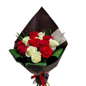 Buchetul este format din trandafiri albi și roșii, realizând cifra 2.